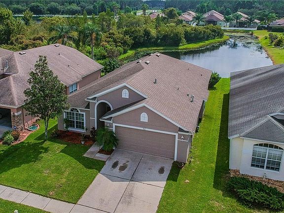 VIEWS FOR DAYS!! EXCELLENT CURB APPEAL! BEAUTIFUL 4 bedroom, 2 bathroom, 2 car garage home nestled within the GATED COMMUNITY of Meadow Pointe III. This INCREDIBLE 1,993 square foot home has a TRIPLE SPLIT BEDROOM FLOOR PLAN, which is SUPERB for extra privacy. With GREAT exterior & interior architectural design, & SOARING high ceilings, this home is absolutely AMAZING. Enter the foyer, & come upon the formal dining room, that can easily be used as an office space. Cook for 2 or 20 in this SPACIOUS, & well-appointed kitchen that has SOLID WOOD cabinetry, recessed lighting, as well as an eating area, & it all looks out to the family room. The bright & welcoming family room boasts tile flooring, as well as TOWERING SLIDING GLASS DOORS, which take you out to the COVERED LANAI, which has an extended concrete patio with a SCENIC overlook of a POND & of CONSERVATION. Many rooms in this AMAZING abode feature views of the WONDERFUL pond & conservation area as well. The LARGE master bedroom of this home showcases a WALK-IN CLOSET, as well as a LUXURIOUS EN SUITE bathroom with DUAL VANITIES, a WALK-IN & glass enclosed SHOWER, as well as a GARDEN TUB. In addition, this home offers an inside laundry room, as well as a NEW AIR CONDITIONER from 06/2019!! The community of Meadow Pointe is truly DELIGHTFUL. Encompassing amenities such as a fitness center, a park, Tennis courts, a playground, pool, clubhouse, & much more, you will be entertained at all times!! Don't miss the chance to be the new owner of this LOVELY home!
