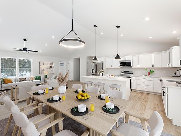 Welcome to 1842 Old Cabin Drive, a stunning modern ranch tucked away in the peaceful woods of Interlochen, Michigan. This thoughtfully designed home offers over 1,500 square feet of open living space, complete with three generous bedrooms and two well-appointed bathrooms. Step inside to discover a bright and inviting living area with soaring vaulted ceilings—ideal for both relaxing evenings and lively gatherings. The kitchen is a culinary delight, featuring stainless steel appliances, crisp white cabinetry, and a spacious central island perfect for meal prep or casual dining. The adjacent dining area overlooks the tranquil backyard, blending indoor and outdoor living for easy entertaining.  The private primary suite boasts a walk-in closet and a beautifully finished en-suite bathroom, while two additional bedrooms and a second full bathroom provide comfort and flexibility for guests or family. A convenient main-level laundry room makes everyday tasks a breeze.  Outside, you’ll be surrounded by the serene beauty of Michigan’s natural landscape, perfect for unwinding after a long day. The two-car garage and unfinished basement offer abundant storage space and potential for customization to suit your needs. Conveniently located near Interlochen’s vibrant arts scene and outdoor recreational opportunities, this home offers a harmonious blend of modern living and wooded tranquility. Don’t miss the opportunity to make this delightful retreat your own!