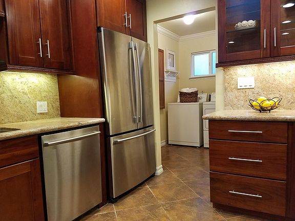 Welcome to this charming Cambrian residence featuring a beautifully remodeled kitchen complete with granite countertops, stainless steel appliances, tile flooring, and a bright skylight. A convenient laundry room equipped with a washer and dryer is located just off the kitchen.