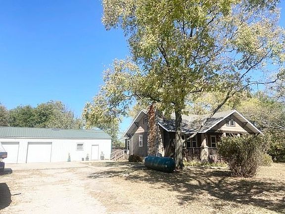 Nestled on approximately 3 acres. The cozy home has 3 bedrooms with a full bath, a nice size dining and family room with a wonderful fireplace as winter is near. There is original woodwork that is in wonderful shape and vintage kitchen appliances that finesse the home. You will want to spend most of your time outdoors as there is so much out there to do including; enjoy the nice deck watching the little ones zipline to the playhouse, spend time under the pergola with the firepit near or end up in the shop area sitting at the bar enjoying watching the game on tv, playing cards or working on some equipment. The bar area has a bathroom plumbed but you will need to finish it out. Nice 30 x 50 garage/shop for all the storage and outdoor needs. There is a lean to on the back of the property for ample storage. The location is amazing as it is within 15-20 min. of Chanute or Parsons, very close to the Prairie Ridge golf course ore best place in the St. Paul area which is the Neosho Wildlife area. It is known for the approx. 1700 acres of managed wetland for duck season. With that being said, you could invest in this home with friends to spend time down here during the year, use as an Airbnb or simply live here quietly. The wildlife is abundant as the owner sees deer on a daily basis and turkey plus other wildlife all around so possibility of endless options. Call me for more information or a private showing today!