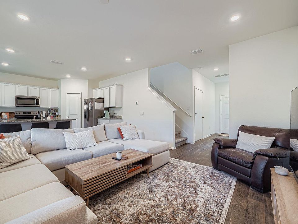 Beautiful townhome in the Palomino community! This like-new home offers three bedrooms upstairs, providing comfort and privacy for family or guests. The main level features a bright and open layout with a spacious living area, dining space, and modern kitchen. The primary suite includes a walk-in closet, dual vanity, and a sleek walk-in shower. A convenient upstairs laundry room with washer and dryer adds to the ease of everyday living. The kitchen boasts contemporary cabinetry and stainless steel appliances. With quick access to US-290, you're only minutes from major employers like Samsung and Tesla, as well as nearby shopping and dining. A perfect blend of style, convenience, and location! **All information is deemed reliable but not guaranteed; buyers and their agents should verify. Deposits subject to change**