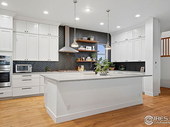 Sweeping Mountain Views...Modern Comfort Meets Colorado Living... Set on an elevated lot - not behind a berm - backing to open space, this 6 bedroom, 5 bath home in Arvada's Candelas community offers sweeping mountain and sunset views in both directions, rare for the neighborhood. Inside, custom flooring and tile details set the tone for a home that's both elevated and inviting. The open concept main level connects a chef's kitchen with the great room and dining area, all oriented toward the view. Upstairs, the primary suite captures dramatic sunsets from oversized windows and features a spa bath with dual vanities, soaking tub, and walk-in shower with view. Three additional bedrooms and a flexible loft provide room for everyone to spread out. Downstairs, the finished walkout basement adds two more bedrooms, a full bath, and generous rec space ideal for movie nights or guests. Step outside to professionally landscaped outdoor living spaces - multiple patios, garden beds, a lush lawn, and covered decks that frame the foothills beyond. Thoughtful touches like stone columns, wood beam detailing, and a swing-ready patio make the yard feel both polished and personal. Enjoy the best of the Candelas lifestyle with community pools, fitness centers, and trails just moments away, all within easy reach of Boulder, Golden, and Denver. Combining big views, modern design, and versatile living space, 18422 W 95th Place delivers that rare balance of style, function, and connection to the Colorado landscape.