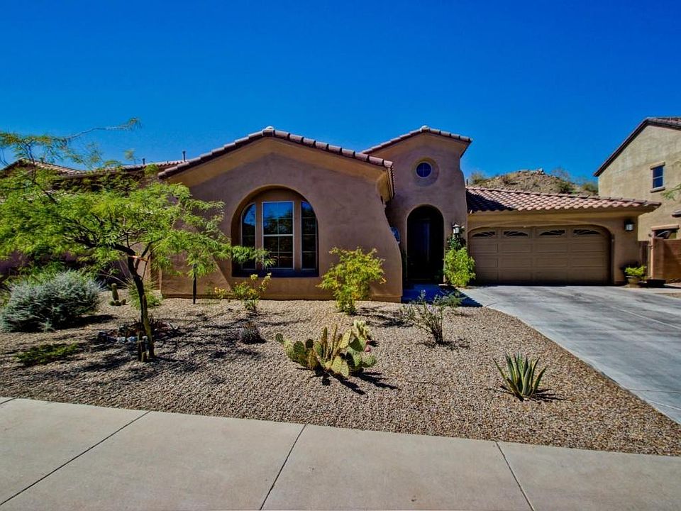 GORGEOUS HOME W/ ALL THE UPGRADES ALREADY IN PLACE & PRIVATE MTN VIEWS. 3BDRM/3CAR GARAGE, 3CM GRANITE COUNTERTOPS & BACKSPLASH, PANTRY, +BUTLER PANTRY, STAINLESS APPLIANCES, BAY WINDOWS, SPRINKLER SYSTEM, UPGRADED RICH DARK MAPLE CABINETRY,18' CERAMIC TILE / HERRINGBONE PATTERN WOOD TILE FLOORING, DESIGNER PAINT SCHEME, CEILING FANS THROUGHOUT, FORMAL DINING, STONE FACIA IN KITCHEN & LIVING RM,FULLY LANDSCAPED, EXTENDED PATIO & AMAZING MOUNTAIN VIEWS FROM KITCHEN, LIVING RM & PATIO, BEAUTIFUL CURB APPEAL. SEE THIS THIS HIGHLY DESIRABLE GREATROOM SPLIT FLOORPLAN SOON, IT'S A KEEPER! AMENTIES IN ESTRELLA INCLUDE: CLUBHOUSE W/ STATE OF THE ART EQUIPMENT, LAP POOL, 12,000SQFT SWIMMING POOL W/ WATER SLIDES, BOATING & FISHING ON 2 LAKES, HIKING/BIKING TRAILS & MANY MORE COMMUNITY ACTIVITIES.
