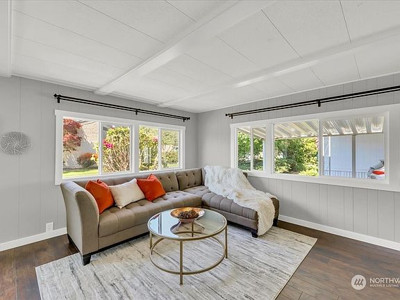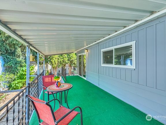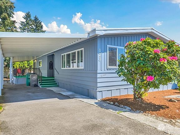 Welcome home to Friendly Village, one of the most desirable 55+ comm. on Eastside. You'll love the quiet loc. of this home that's next to the clubhouse, pool, and covered bridge across Bear Creek. Totally remodeled home has new windows, int./ext. paint, new wiring, elec. panel., water htr, doors, molding. Kitchen feats. repainted cabinets, new butcher block b'fast bar, solid surface counters, newer gas stove, D/W, sink. Both baths updated w/new fixtures, tub surrounds (small step shower). Many windows add light. Storage shed. Space rent is only $820/mo. Park has many interest clubs, fenced RV lot, exercise rm, Park owned by King Co. Housing Auth. 3 pets under 25lbs ok. Pre-inspected! Fin. avail.