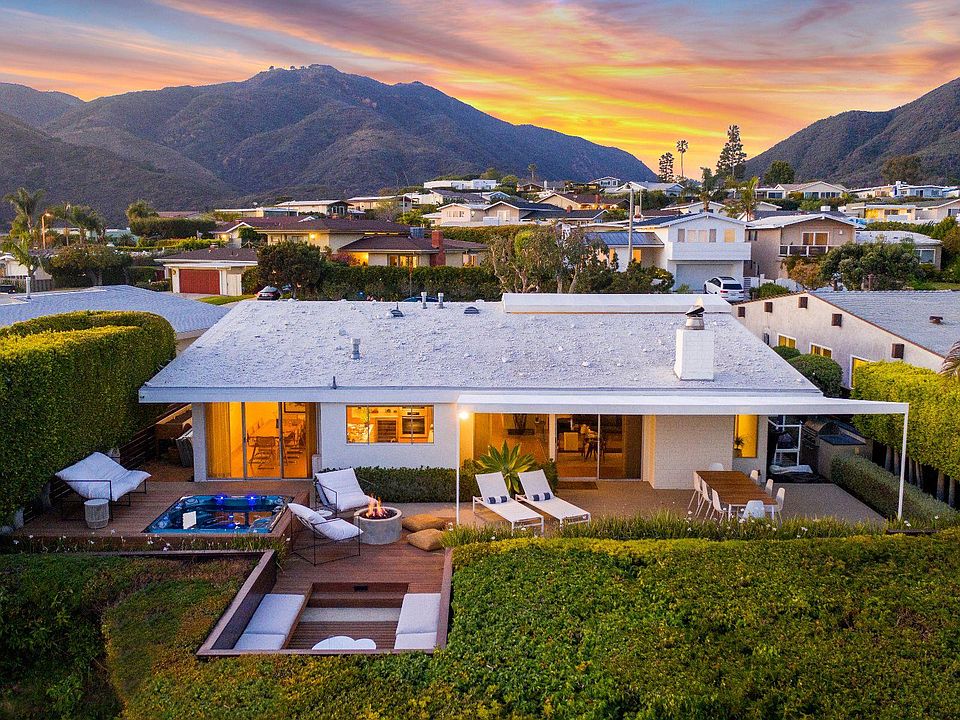 A restored Mid-Century in Malibu's Sunset Mesa completely reimagined by internationally renowned architectural firm, Johnston Marklee. Impeccable finishes, clean lines, and an abundance of natural light grace this 3-bed, 2-bath home as every detail was handpicked including natural oak hardwood floors, a wood-burning fireplace a sunken outdoor lounging area. Miele & Subzero appliances fill the chef's kitchen with Corian countertops and a separate wine-cellar. Enjoy 200-degree panoramic views extending beyond the Queen's necklace up to Catalina Island and Palos Verdes in natural privacy as thick shrubbery tops the Mangara hardwood fences that surrounds the outdoor dining, Lynx barbecue, gas fire-pit, Sundance Spa & Sunbrella awnings. Located in one of Malibu's most desired neighborhoods just minutes from the beach and Santa Monica.