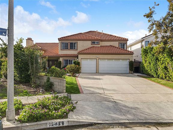Elegant Porter Ranch Corner Home Near Granada Hills Charter School. Welcome to 18429 Germain St., Porter Ranch, CA 91326—a stunningly and beautifully upgraded 4-bedroom, 4-bathroom home in a highly desirable neighborhood, just walking distance from Granada Hills Charter High School. Step through the grand double-door entrance into an inviting formal living room with a cozy fireplace, seamlessly flowing into a spacious family room, also featuring its own fireplace. The home offers a formal dining area, a wet bar, and a gourmet kitchen with stainless steel appliances, a deep pantry, and ample counter space—ideal for entertaining. A fully remodeled sunroom with an additional flex kitchen enhances the home's versatility. The ground floor features a guest bedroom with a full bath, along with a powder room for added convenience. A wide, elegant staircase leads to the upper level, where you'll find a family area, a luxurious master suite with a retreat, fireplace, his-and-hers separate closets, and a spa-like en-suite bath with a soaking tub and standing shower. A dry bar in the hallway adds a touch of sophistication. Two additional bedrooms share a recently remodeled full bathroom. The expansive backyard is an entertainer’s dream, featuring breathtaking mountain views, a sparkling pool and spa, and a half basketball court—perfect for outdoor gatherings and recreation. A three-car attached garage, along with a freshly painted interior and exterior, completes this remarkable home. Don't miss this rare opportunity to own a well-appointed, versatile home in one of Porter Ranch’s most sought-after communities! OPEN HOUSE THIS SATURDAY, SEPTEMBER 13 BETWEEN 12-3 PM