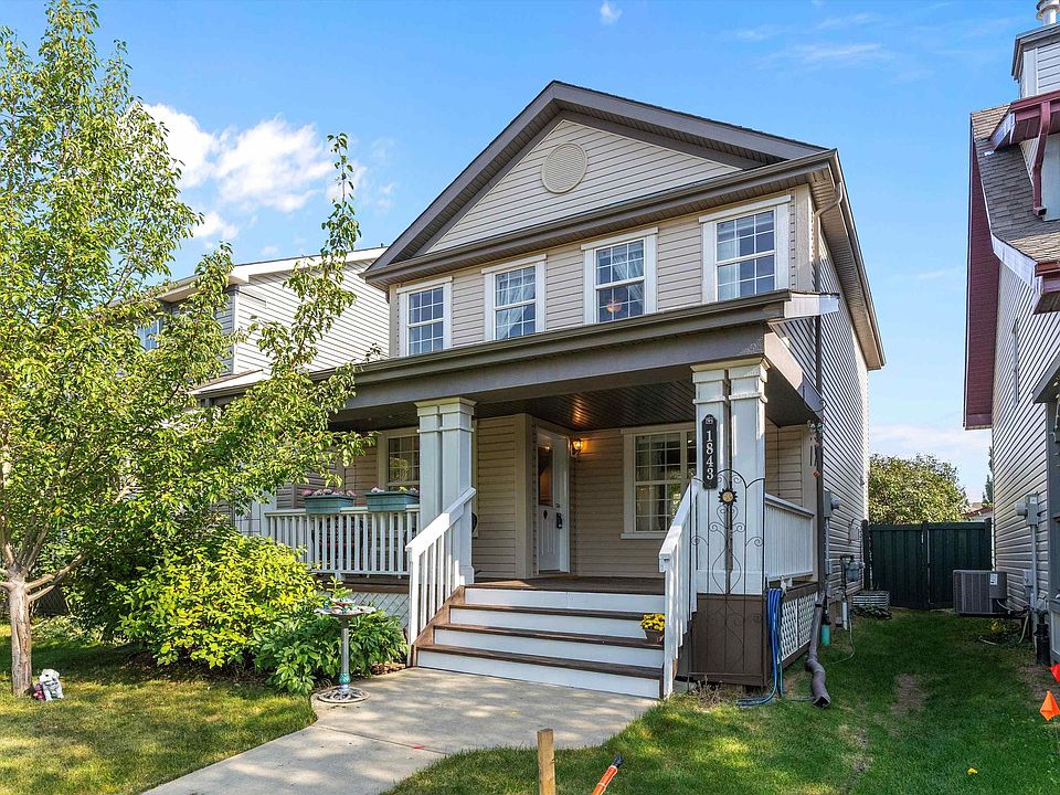 Welcome to cozy Rutherford living in this immaculately maintained two-storey, tucked away on a massive cul-de-sac with lots of parking and backing onto a peaceful greenbelt/park. Families will love the open main floor plan featuring a spacious kitchen with raised eating bar, ceramic tile, and an open plan living room warmed by a corner gas fireplace with roughed-in surround sound. Upstairs, you’ll find three bedrooms and 2.5 baths, creating the perfect layout for family living. Pride of ownership shines with numerous updates including newer shingles, hot water tank, washer/dryer, a beautifully covered front veranda, and a large rear deck just re-stained for years of enjoyment. Whether it’s relaxing on the veranda on warm evenings. Fully finished bsmt has 4th bedroom, family room and 3rd full bath, making this perfect and move in ready! The backyard is a true retreat—fully fenced with a double detached garage; plus pear, lilac, Saskatoon and Nanking cherry bushes to be picked and enjoyed.