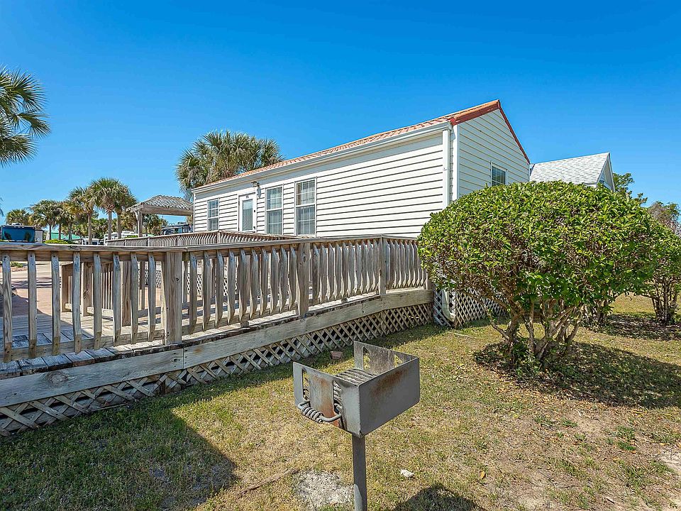 Two bedroom Park Model sleeps 6 easily. Has a large outside deck with picnic area or can be used for sunbathing. This property has a built in wheelchair ramp and a walk in shower. It also has an electric stove and electric fireplace. Being offered fully furnished, down to the sheets and towels and ready to rent. Owner used 3-4 months out of the year. HOA fees cover electricity, wifi, water, trash, cable tv and pest control. The Resort offers a heated pool, laundrymat, a pavilion and a club house. The resort property area is located across the street from the Carrabelle Beach and only two miles to the Carrabelle downtown.