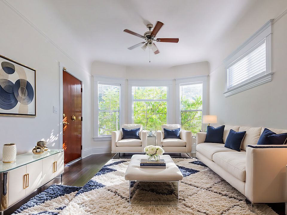 Move-In Special, Free 1 Month Rent. Welcome home! This will be your last stop. This unit combines traditional charm with modern finishes and furnishings. Walk into the unit and find a very large and bright open-concept living area with a sizable living room, dining area, kitchen with stainless steel appliances, and a beautiful stone countertop. The kitchen has plenty of cabinet space. The master bedroom has a large walk-in closet, plenty of natural light, and an ensuite bathroom. The second and third bedrooms are quite large as well, with full closets, plenty of natural sunlight, and space for lots of furniture. Wood flooring, 12+ foot ceilings, beautiful crown and base molding, and AC units round out this gem! There is plenty of outdoor space to enjoy as well, including a furnished backyard with a fire pit surrounded by seating, a dining table and chairs, elegant lighting, mature mango and papaya trees, a side yard that includes a lovely garden with custom boxes for planting and a spacious front yard with a lovely porch! Laundry, storage, and parking (1 space) included. Rent advertised includes 1 month of rent-free being pro-rated into the annual rent
