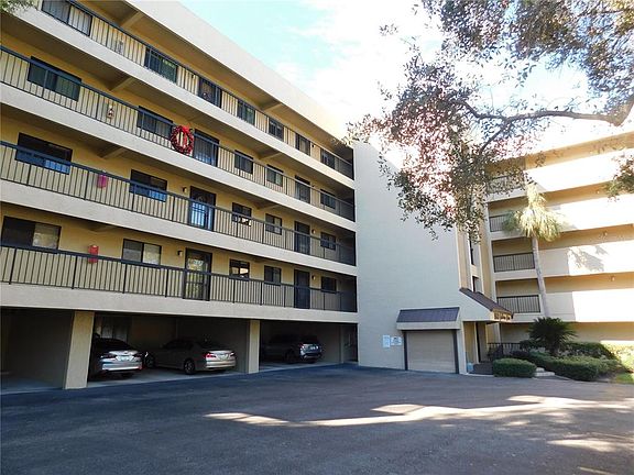 This spacious 55+ condo offers a bright, open floor plan with stunning views of the lush, tree-shaded Tarpon Springs Golf Course, pond and community pool as seen from your large screened tiled lanai. Step inside to discover an updated kitchen equipped with modern stainless steel appliances, and ample pantry space with additional tall built-in cabinets perfect for all your culinary needs. The open-concept living and dining area flows to the lanai, perfect for relaxing or entertaining. The split-bedroom floor plan provides privacy, with the primary suite featuring a sitting area nook, walk-in closet, dual vanities, and a tub/shower combo. The second bedroom is near a full bath with a walk-in shower. A full-size washer and dryer are tucked into a spacious interior closet for added convenience. This unit comes with one reserved, covered parking spot on the ground level under building, and an additional storage unit perfect for bikes, golf clubs, and more. Green Dolphin is a well-maintained 55+ community that includes water, trash, high-speed internet, cable and elevator access. Amenities include a heated pool, clubhouse, fitness center, tennis and pickleball courts, shuffleboard, billiards, BBQ area, and walking trails. Located minutes from the Tarpon Springs Sponge Docks, downtown shops and restaurants, Pinellas Trail offers miles of scenic paths for biking and walking, beaches, and medical facilities. Golfers can find many courses nearby to tee off from including Tarpon Springs Golf Course, Copperhead Course, Innisbrook, and Islands Golf Course. This is a non-smoking residence and the owner prefers no pets please.