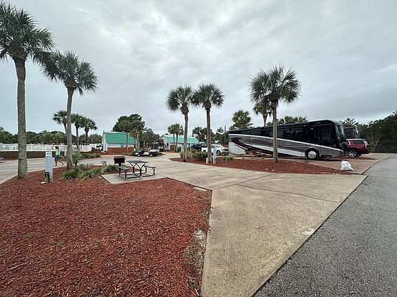 Pull Thru - Carrabelle Beach RV Resort - Enjoy peaceful paradise along the Forgotten Coast and nestled just steps away from the white sugar sands of the “pet friendly” Carrabelle Beach. This site has lush, natural landscape, a level concrete pad and outstanding onsite amenities including, full hook ups (30 and 50 amp) Wi-Fi, cable, electric, picnic table. The resort has a lavish heated swimming pool with tiki tables and a Pavilion with a tv for your favorite football games, live entertainment for you and all paying guests, a new laundry facility, a clubhouse with a pool table and full kitchen, a fenced in dog park, a fish cleaning station, arts and crafts and much more! Enjoy your site when you can and make money when you're away..this is a Win/Win situation.