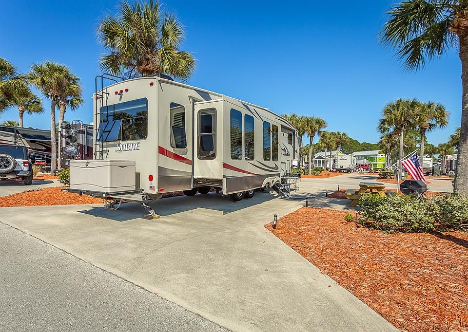 DELUXE PREMIUM 45 ft. Pull-through RV site Fantastic investment opportunity right across the street from Carrabelle Beach! So many amenities....heated pool, pet park, community center, new laundry room and wonderful views of the bay.