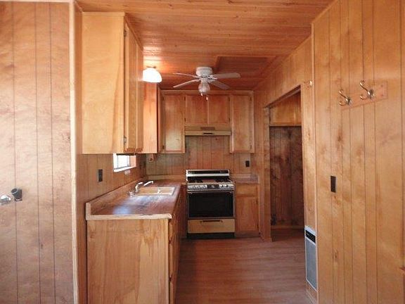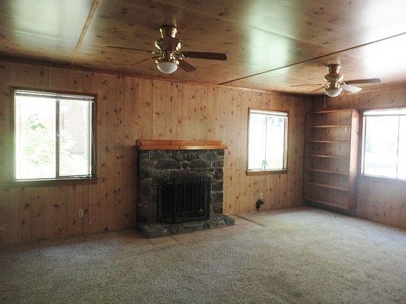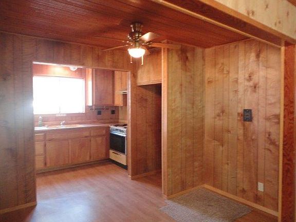 This adorable vintage home features 2 spacious bedrooms, a large living room with a vintage rock fireplace. There is a large kitchen with breakfast nook adjacent to the living room. The exterior features a covered front porch and a brand new half wrap around deck. The yard is partially fenced and has a large storage shed. There are beautiful pine trees and lilacs in the yard. Located on a very quiet street this home is a cozy retreat or full time home.