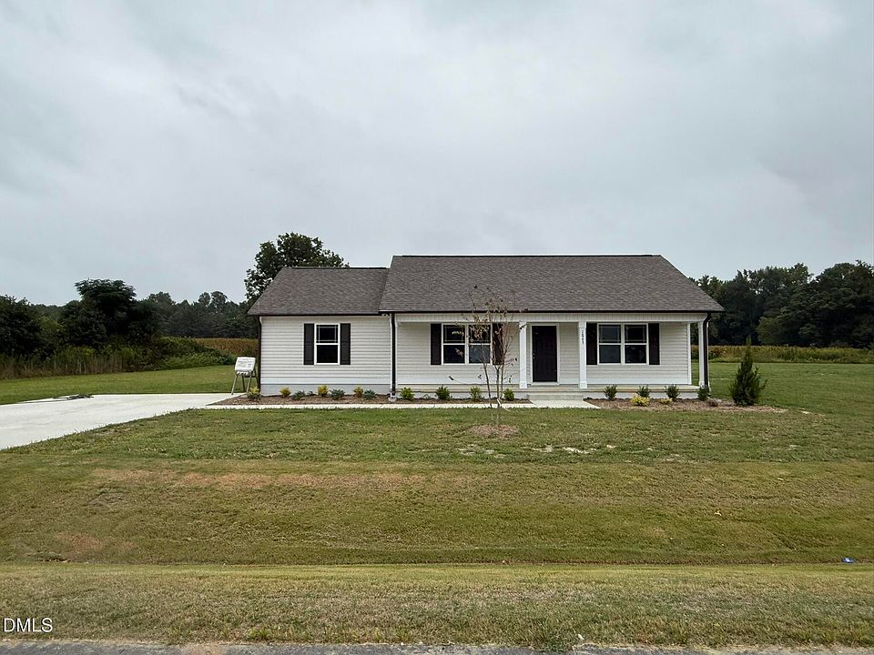 No HOA and not in a subdivision! Lovely ranch plan with rocking chair front porch! Cozy family room is open to the eat in kitchen that offers granite SS appliances, tile backsplash and FRIDGE. Owner's suite with a walk-in closet and dual vanity. Two additional bedrooms share a full bathroom. Patio in back is great for entertaining guests. See agent remarks for more info!
