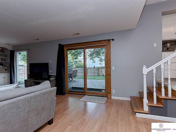 This corner lot house provides all that a homeowner wants! The porch & patio in the spacious backyard, including a full fence AND fire pit is perfect for get togethers. West Papio walking trail goes to Lake Zorinsky from the house + park behind house. This Pottery Barn styled house is well maintained and boasts a beautiful brick fireplace. The kitchen is comfortable and has space for additional dining in separate room. Bedrooms are upstairs. Rec room on the lower level with laundry. Move in ready!