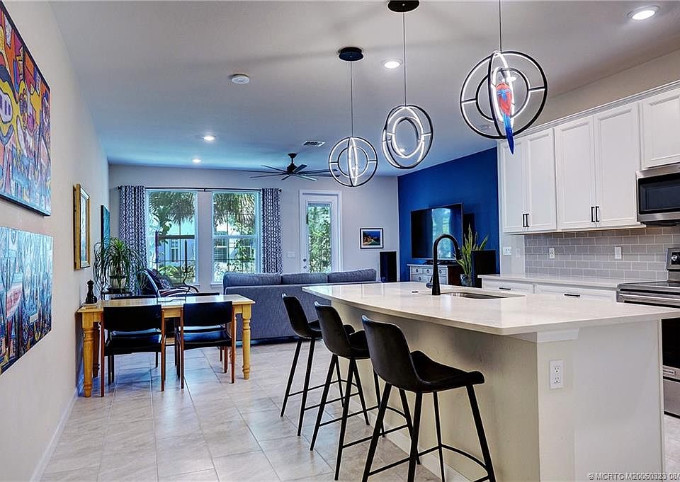 Absolutely gorgeous and truly turnkey! This stunning 3 bed 2.5 bath townhome has been thoughtfully upgraded from top to bottom. Built in 2022 with solid CBS construction and equipped with impact windows and doors, this home offers peace of mind and energy efficiency. Step inside to discover an open concept floor plan featuring a quartz island adorned with contemporary pendant lighting. Step outside onto the newly added paver patio, perfect for grilling.