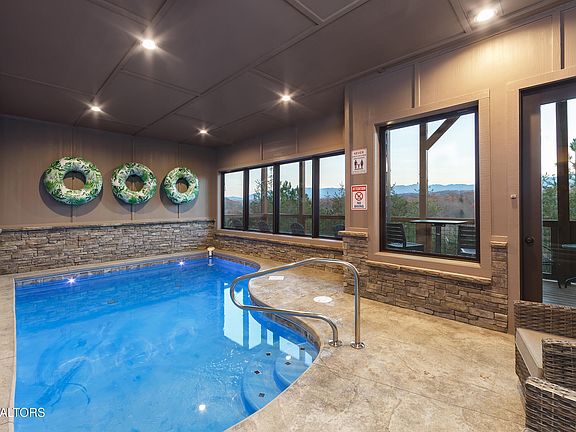 CUSTOM built, CUSTOM designed modern chalet with jaw dropping MOUNTAIN VIEWS just minutes from Pigeon Forge Parkway! Certificate of Occupancy in hand for 18 guests; this property is ready for service in 2025. Rental projections for $225k+. Mt. LeConte is front and center from every deck and common area and 4 of the 6 bedrooms! Indoor heated gunite pool will help this property perform consistently. 6 spacious suites, 1 on the main floor, 4 upstairs, and 1 on the basement floor. Main floor features 12ft ceilings and 10ft tall commercial style glass perfect for taking in the mountain views. Open concept floor plan perfectly blends kitchen, dining, and living into 1 large space perfect for entertaining and large gatherings. Upstairs common area has a dry bar and more glass to take in the great views. Basement floor features 12ft ceilings with endless entertainment via the game space, dedicated theater, indoor pool, and hot tub! Generous decks on all 3 floors, and 3 bedroom suites feature their own private balconies for intimate and private enjoyment of the amazing mountain views! Just 8 minutes from Pigeon Forge Parkway this mountain getaway will make for an ideal Short Term Rental!