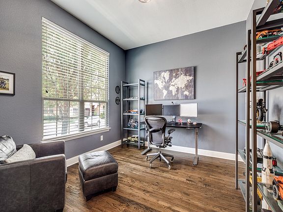 Excellent neighborhood with a private lake for fishing and nature walks plus enjoy easy access to additional hike and bike trails. This well maintained property is an Ashton Woods Turnberry plan with a 3 car tandem garage, extensive real hardwood flooring, granite counters, gas cooktop and open concept living room, dining and kitchen areas leading to a private backyard and covered patio. Twelve foot ceilings in main living area with stone fireplace and gas logs. Custom vaulted 19 foot ceilings in primary bedroom and bathroom. The private office features French doors for work from home privacy. Guest bedroom upstairs with private ensuite bathroom, plus additional bedrooms that share a hall bath. Second living area upstairs and a separate dedicated media room for movies, enjoying sports and gaming. Schools zoned for the coveted Allen ISD and located with easy access to all freeways including 121, 75 and George Bush for easy commute to Plano, Frisco, Dallas, and all areas of the DFW metro. Access the trail to Twin Creeks Park from the neighborhood and enjoy 13 acres of hike and bike trails, zipline, playground, expansive open spaces, picnic tables, benches, and a pavilion. For entertainment, check out Watters Creek, a community of shops, restaurants, live music, outdoor activities for everyone. Hurry to view, this one is a winner!