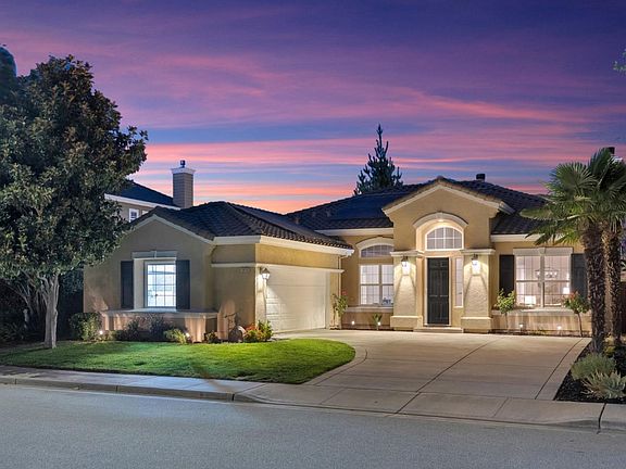 An exceptional single-story executive home nestled at the end of a quiet cul-de-sac, just steps from a vibrant neighborhood park. The grand entry welcomes you with soaring ceilings and abundant natural light. A formal living room with gas fireplace, elegant white mantle, and rich hardwood floors flows seamlessly into the formal dining room, creating the perfect setting for gatherings. The Chefs Kitchen is a stunning space, showcasing contemporary stone countertops, a white subway tile backsplash, Wolf gas cooktop, integrated Zephyr range hood, and sleek stainless steel appliances. The primary suite offers a peaceful retreat, complete with a spa-inspired bathroom featuring a modern stall shower with Blanco Carrara stone, jetted soaking tub, dual-sink shaker cabinet vanity with Carrara countertop, custom LED-lit mirror, and walk-in closet. A spacious executive office with high ceilings and front-yard views makes working from home a delight. Two additional bedrooms provide flexibility for family or guests. Outdoors, a paver patio, lush lawn, pergola and thoughtfully curated landscaping create an inviting backdrop for relaxation and entertaining. Owned solar, home automation, security cameras, and more! Walking distance to the 3 Mission Ranch parks and close to commute alternatives.