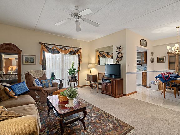 Welcome to easy, maintenance-free living in this beautifully maintained all-main-level ranch condo, nestled in a quiet and highly sought-after 55+ community. This charming home is located in a well-kept Flexicore building and features a convenient one-car attached garage with pull-down stairs leading to attic storage with flooring-perfect for all your extra belongings. Step inside to find a spacious layout filled with natural light. The kitchen offers classic oak cabinets, a pantry, a white porcelain sink, and mostly newer white appliances (2025), along with a cozy breakfast area that opens to a lovely screened-in porch overlooking peaceful, scenic open space. The sun-drenched living room features a second access to the screened porch, creating the perfect spot to enjoy morning coffee or unwind in the evening. A separate dining area offers plenty of space for entertaining guests or enjoying meals at home. The generously sized master bedroom includes a large walk-in closet and a private ensuite bath with a relaxing whirlpool tub and separate shower. You'll also appreciate the in-unit laundry room, complete with a utility sink and newer washer and dryer (2025). Ceiling fans in every room add comfort throughout the home, and recent updates include a newer roof (approximately 3 years) and updated windows and screens in the porch (approximately 5 years). Don't miss this opportunity to enjoy peaceful, carefree living in a vibrant, well-cared-for community with paths and serene ponds - all while in close proximity to shopping, dining and more!
