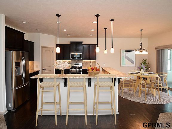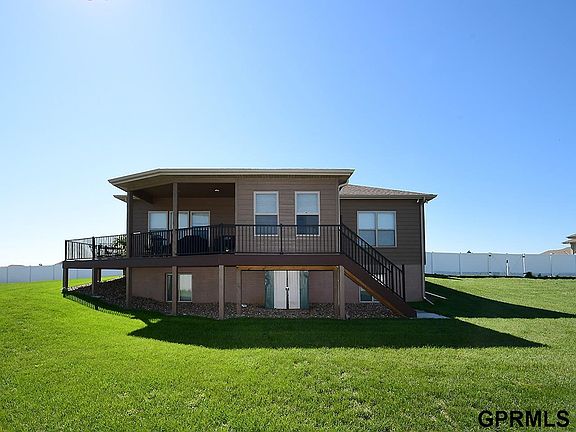 VIEWS! VA Home Buyers this is an assumable loan. Sitting on a generous .75 acres with a large fanned and fully fenced lot. Only a short walk or ride to Prairie View Lake and recreation area. This move-in ready and deep cleaned Bennington home is ready for you! Open concept living on the main floor with a gas fireplace, great kitchen and dining which leads to an enclosed deck space! Great for the upcoming winter months or plant enthusiasts! Not to mention a wrap around deck overlooking the vast fields and no rear neighbors! Primary bedroom and suite has double sinks, tub, shower and massive walk-in closet. Two additional bedrooms with main floor laundry. Finished lower level boasts a HUGE family room and additional rec room area. Plus two more large sized bedrooms and tons of storage space. You won't want to miss this great home! VA ASSUMABLE LOAN with 2.75 INTEREST RATE for VA Loan.