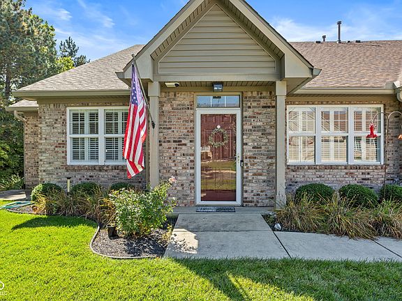 A gorgeous brick beauty with a view! Welcome home to Piers End Drive! This 2BR + Den condominium is exactly what you have been waiting for: all one level with a private entry in Noblesville AND a 2 car attached garage with incredible storage! Step inside to soaring vaulted ceilings and built-in bookcases that flank a cozy fireplace... the perfect place to display your treasures! Tons of natural light pour in the front windows and the sliding door in the den. French doors allow you to close off the den if you choose! This is the perfect spot for an office or reading room. The great room connects to the kitchen and dining room - tons of space so no cramped quarters! The bedrooms are just down a short hallway for privacy. Both bedrooms and the den have views of the wooded tree line thru high-end plantation shutters! The primary bath is luxurious with its sparkling shower and double sinks! Walk in closet is HUGE! The secondary bedroom offers another versatile space to use how you choose! Functional mud room/laundry area off the garage is great for storage. Incredible location just minutes to shopping, dining, healthcare and entertainment!
