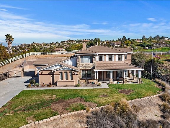 ***BEAUTIFUL ESTATE on 1 ACRE with RV PARKING and MOUNTAIN VIEWS*** Located in the Highly Desirable area of Mockingbird Canyon Estates with Low Tax Rate, No HOA in Riverside Unified School District (Dual Boundary - Choice of 2 High Schools). This Immaculate Home has an Amazing Layout with a Huge Primary Bedroom Downstairs and a second Bedroom/Office downstairs. This Home has NEW Exterior Paint, 3102 Sq. Ft., 4 Bedrooms, Loft (could be 5th Bedroom), 3 Full Bathrooms, 3 Car Garage, RV Parking, views of Gorgeous Sunsets, Snowcap Mountains and City Lights Views. Upon entering this Beautiful Home there is dramatic staircase with vaulted ceilings, a Formal Living Room and Dining Room with French Doors leading to a front Courtyard. The Large separate Family Room has a Fireplace overlooking the Kitchen and large Patio with Pavers and Basketball Court. The Kitchen has a Huge Island, Quartz Counters, Double Oven, Walk-In Pantry and a Second Dining Room. The Primary Bedroom is Downstairs with a Huge Bathroom, Soaking Tub separate Walk-in Shower and Huge Closet with a second downstairs Bedroom/Office perfect for Guests or Mother-in-Law Quarters with full second Bathroom and Laundry Room. The upstairs is perfect for Kids or Teenagers with 2 spacious Bedrooms, Full Bathroom and a Huge Loft which could be converted to a 5th Bedroom. The Backyard has a Large Patio Cover with Pavers and a Sport Court. There is a ton of usable land to build a Huge RV Garage, Guest House, Horse Facilities or anything you can Dream up. EXCELLENT SCHOOLS!!! Checkout the Virtual Tour.