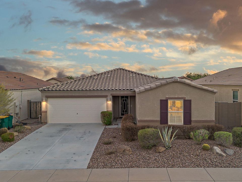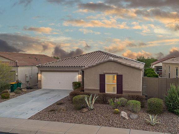 Fall in love with this former model home at the base of the Superstition Mountains in Gold Canyon, known for its stunning natural beauty and abundance of outdoor activities. Miles of endless trails right from your front door, this is the perfect home for someone seeking a slower pace of life where you can be one with nature, but enjoy the proximity and amenities of larger cities like nearby Mesa. This home is Energy Star certified with solar panels, SmartKey front entry, Moen WaterSense kitchen and bath fixtures, electric water heater, and a Carrier 14 SEER A/C unit with smart thermostat. The open layout is perfect for entertaining, and the split floor plan allows everyone their privacy and comfort. Whip up your signature dish in the spacious kitchen featuring 42-in upper cabinets, a large island, and huge walk-in pantry. Then enjoy your evening reading on the covered patio in your professionally landscaped backyard oasis. The contents of the home are available as well, making it truly move-in ready and hassle-free.
