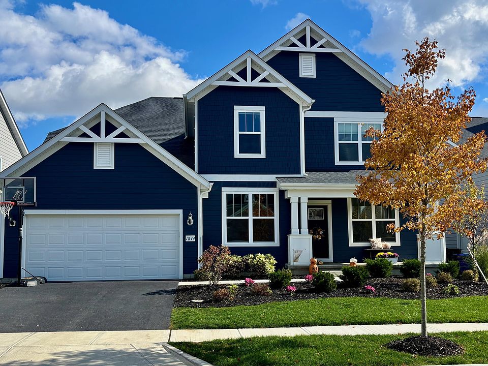 Absolutely stunning home in Hilliard Schools! You will love this floorplan. First floor has a designated den, dining room/flex space. The huge great room flows into the eat in space and HUGE kitchen with granite counters, stainless steel appliances, and a butler pantry/family management area. Upstairs you have a large loft and laundry room. Plenty of storage with hall linen closet and each bedroom has a walk in closet. Primary suite has an attached bath and walkin closet. Full basement is ready for you to finish with full bath rough in and egress window. Lot is perfect with fenced backyard and backing to open greenspace. Updates include, whole house humidifier, tinted windows on first floor, fenced yard, and upgraded landscaping.