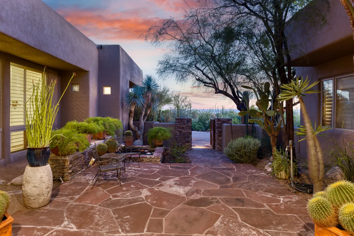 Splendid contemporary in exclusive gated Pima Canyon; 4 spacious bedrooms w/marvelous en-suite baths. Romantic primary retreat features a fireplace seating area & luxe spa-like bath. Open floorplan blends indoor/outdoor living, soaring ceilings, walls of glass frame sweeping Catalina Mtn views. Great room, Gourmet kit features 100 bottle Sub-Zero wine fridge, ...
