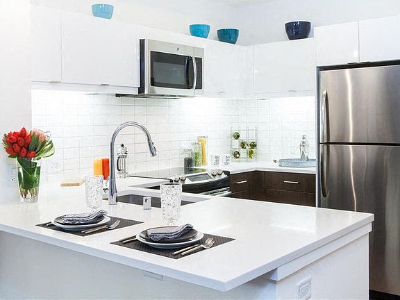 Private patios or decksFully-equipped gourmet kitchensKitchens with breakfast barsCaesarstone countertopsTile backsplashesIn-home washers and dryersBathrooms with surround tile