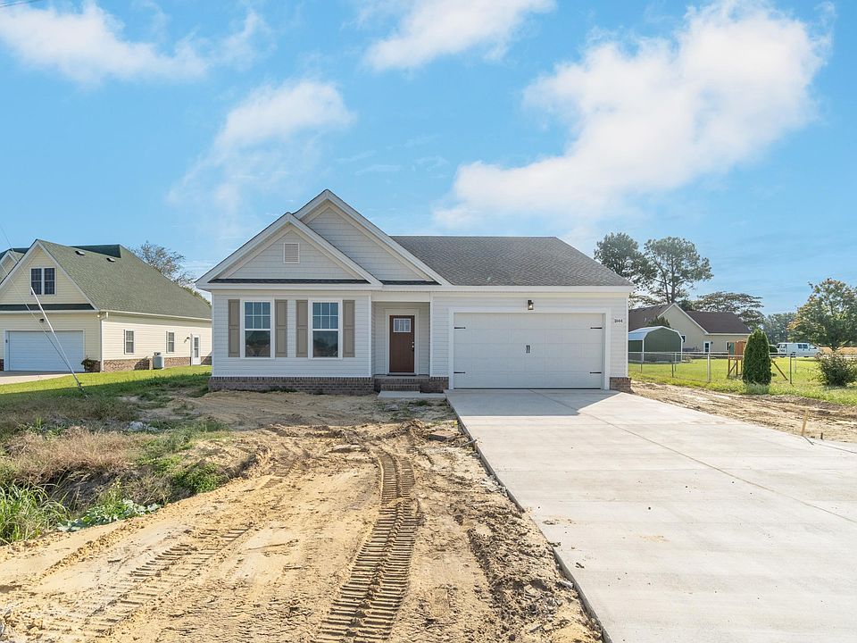 This new construction ranch home with 3 spacious bedrooms and 2 luxurious bathrooms, is designed for comfort and convenience. Step inside to an open floor plan that seamlessly connects the living, dining, and kitchen areas, making it ideal for entertaining or cozy gatherings. The heart of the home is the kitchen, featuring sleek stainless steel appliances, granite countertops, and ample cabinetry for all your storage needs. Natural light floods through the windows, enhancing the airy and inviting atmosphere. The primary suite is a true retreat, boasting a private bath with premium fixtures and a walk-in closet. The additional bedrooms are generously sized and share a well-appointed second bathroom. A 20' x 15' concrete turnaround is being added to front right of driveway.