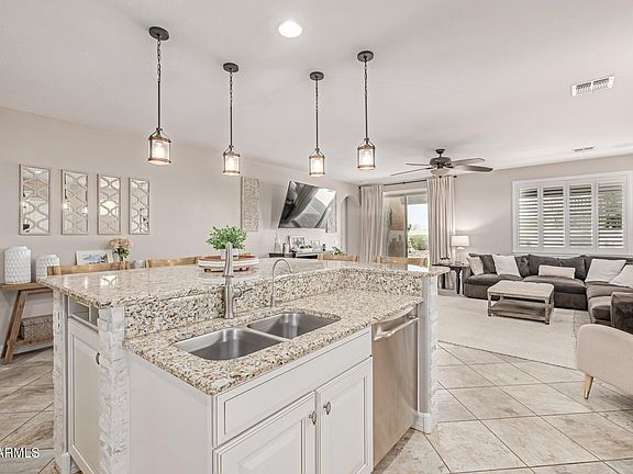 Perfectly situated, beautiful, PAID OFF SOLAR, energy-efficient home is ready for you to move in! Appealing interior boasts a blend of wood-look & tile flooring, neutral paint, archways, and plantation shutters. You'll LOVE the living room, formal dining room, and the harmonious great room adorned with pre-wired surround sound. Well-appointed kitchen features recessed & pendant lighting, a pantry, tile backsplash, gleaming stainless steel appliances, granite counters, and a prep island with a breakfast bar. Romantic primary retreat offers direct outdoor access, an ensuite with two vanities, a soaking tub, and a walk-in closet. Outside, you'll find a spacious backyard, complete with a covered patio and pergola, ideal for enjoying serene mornings or weekend gatherings. PLUS! Excellent Community amenities await. Don't miss!