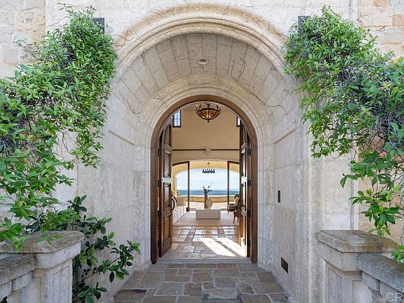This masterfully built French Chateau-inspired estate is proudly perched on a private 4-acre site in the exclusive community of Cielo with panoramic views of the ocean, downtown skyline, and majestic mountains. Spanning 12,000 sq ft the spectacular estate showcases impeccable craftsmanship and architectural authenticity. Exquisite design in the fixtures and extravagant treatments, all with comfort and pleasure in mind are down each grand hallway and behind every door. The chef's inspired kitchen is a culinary masterpiece adjoining the great room with a massive 20' high stone fireplace and 24' ceilings. With a movie theatre, full wet bar, billiard gaming room, and subterranean wine cellar with tasting room, this home offers exceptional entertainment. Outdoor amenities include a covered loggia, resort-style pool with swim-up bar and fire features, elevated spa, built-in barbecue, stone firepit, fully equipped outdoor kitchen, ponds with water lilies, fragrant rose garden, 5-hole golf course with viewing deck, 11-car garage with generous motor court and a private 1,200 sq ft detached guest house. Energy-efficient with 100% Solar power. Every detail of extraordinary quality is exemplified in this stately residence. The 24-hour guard-gated community of Cielo offers many association amenities to include a community center, gym, clubhouse, tennis and pickleball courts, playgrounds, multiple pools, and basketball courts.