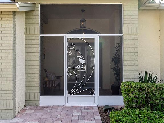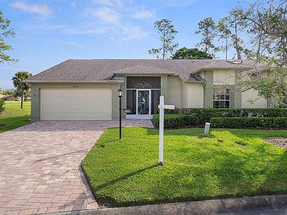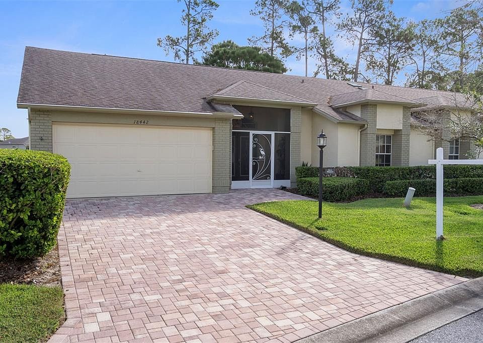 Model Perfect Luxury Villa with Golf Course Views! Discover elegance and ease in this impeccably updated end-unit Oakmont villa—an exceptional residence where every detail reflects quality craftsmanship and timeless design. No expense was spared in the transformation of this home, creating a stunning showcase ready to impress the most sophisticated buyer. A welcoming covered front porch sets the tone for relaxed Florida living, offering the perfect spot to savor your morning coffee or unwind in the afternoon breeze. Step through the elegant double doors into a grand living area, where soaring cathedral ceilings and luxury vinyl plank flooring and a beautiful fireplace create a sense of sophistication. The designer kitchen is a true centerpiece, boasting 10-foot custom cabinetry with soft-close features, quartz countertops, a stylish tile backsplash, GE Café appliances, and thoughtful storage including pull-out pantry shelves and a concealed trash cabinet. Bar-height seating invites casual conversation, while the breakfast nook, with a bay window and honeycomb blinds offers views of the golf course provides a serene dining setting. The well-planned layout ensures privacy and comfort. The spacious primary suite offers two walk-in closets and a luxurious en suite bath, while the guest suite—with a large walk-in closet and Murphy bed chest—doubles beautifully as a home office. Function meets refinement in the laundry room and butler’s pantry, which provide direct access to the garage and feature an additional sink plus newer LG washer and dryer. The garage itself includes a sealed epoxy floor, ample built-in storage, and a second refrigerator. Entertain or simply unwind in the expansive Florida room overlooking the 4th hole of the championship golf course—a perfect setting for both quiet mornings and evening gatherings. The ample patio outside features an automatic retractable awning, giving you a convenient escape from the sun and weather, while still enjoying the outdoor lifestyle and your view of the golf course. Recent upgrades add confidence and value, including: New roof (2020) New A/C system (2022) New water heater and softener Extensive designer updates throughout Offered fully furnished with high-quality, designer pieces and accessories, this home is truly turnkey luxury. Just bring your suitcase and begin living your best Florida life. About Heritage Pines: This premier 55+ community offers a resort-style lifestyle with a championship golf course, elegant clubhouse, heated pool and spa, tennis and pickleball courts, fitness center, on-site dining, and a vibrant calendar of social events and clubs. The low HOA fee includes cable, internet, lawn care, exterior painting, irrigation, and pest control—ensuring effortless living in a beautifully maintained community. Welcome to a home where luxury, leisure, and lifestyle meet seamlessly.