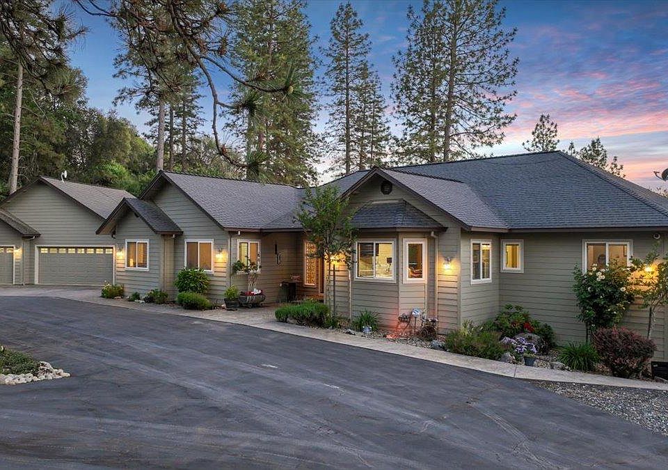 This incredible property offers an abundance of amenities, privacy, & spectacular views. Living room has a vaulted ceiling, gas fireplace, & deck access. Wet bar w/new wine fridge. Formal dining area accommodates a large table ideal for hosting. Chef's kitchen has new 6 burner Wolf Cooktop. Granite countertops. Dual oven, walk-in pantry, warming drawer, microwave & new dishwasher. Adjacent breakfast nook. Oversized laundry/mud room w/ample storage, granite countertop & sink. Large multi-use room, currently used as a sewing room. Could be used as an additional bedroom or executive office. Primary suite has walk-in closet w/custom storage system, outdoor access, & fireplace. Dual sinks, jetted tub, & tiled shower. Main level has 2 additional bedrooms, 2 full baths, & another bonus room. Back deck w/gas fire feature, retractable awning, & wrap around deck. Downstairs living area with its own exterior access. Many potential uses as it provides separate ADU/apartment features: Large living room, bar area, fireplace, full bath, & kitchen. Built in heated pebble tec spool, waterfall, stamped concrete & newly added Hot Springs Grandee Luxury Hot Tub. 3 car garage w/epoxy floors & custom cabinetry. Two 30 Amp RV hook ups. This property is simply impressive! See Virtual Media for 3D Tour.