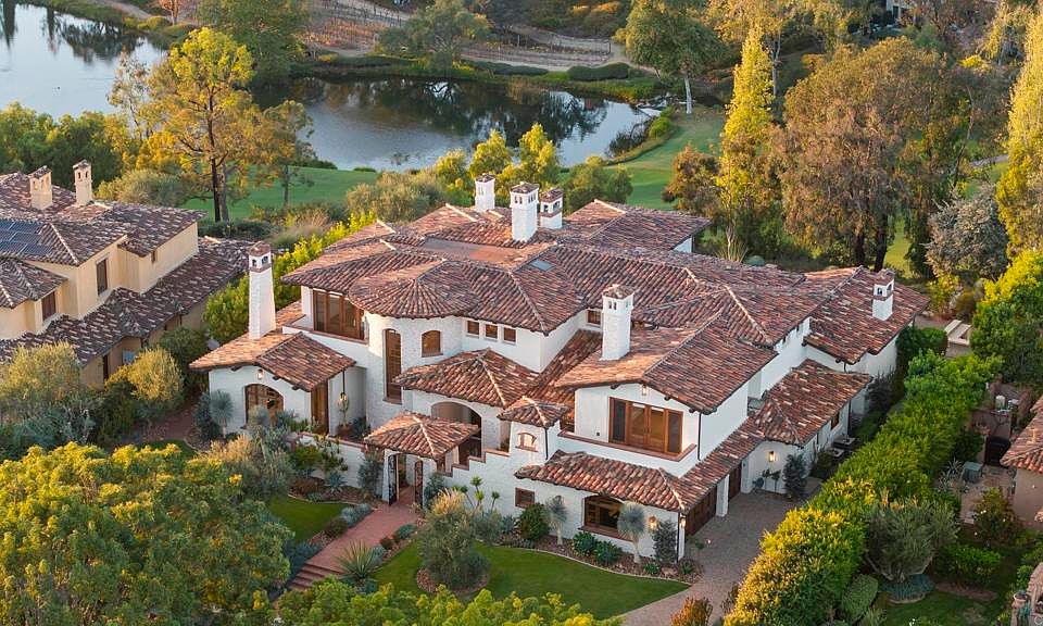 This stunning 5+ bedroom modern European estate offers an expansive view that overlooks the 9th Fairway and iconic clubhouse within the prestigious guard-gated community of The Bridges in Rancho Santa Fe. Extensively remodeled, completed in 2025, the 8,900+sqft residence captures the essence of refined living with a seamless blend of craftsmanship, comfort, and design—all framed by one of the community’s most sought-after views. Inside, natural light pours through expansive windows and French doors that open to the golf course, creating a perfect indoor/outdoor connection ideal for both daily living and entertaining. Every finish was chosen with care—from hand-finished limewashed fireplaces and European white-oak floors to Italian marble countertops, burnished-brass fixtures, and designer lighting. The reimagined kitchen serves as the heart of the home with a farmhouse-style sink, premium appliances, oversized walk-in pantry, bar, and temperature-controlled wine cellar that make entertaining effortless. Additional spaces include a built-out home theater, elegant office, and a separate guest wing with private access that offers versatility for guests, multigenerational living, or creative use. The primary suite is a true retreat, featuring a newly remodeled bathroom in Italian marble with dual vanities, a freestanding soaking tub, and spa-like tranquility. Outside, the lush grounds create a resort-like backdrop for year-round living with a saltwater pool and spa, built-in BBQ bar, and sweeping fairway views framed by golden evening light over the clubhouse. Set within one of Rancho Santa Fe’s most desirable golf communities, residents of The Bridges enjoy world-class amenities, fine dining, and 24-hour security—all just minutes from Rancho Santa Fe Village, top-rated schools, and the coastal towns of Del Mar, Solana Beach and Encinitas.