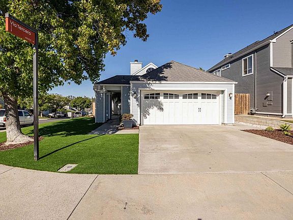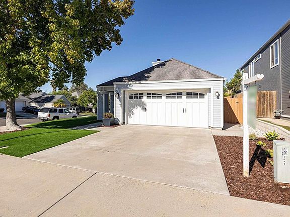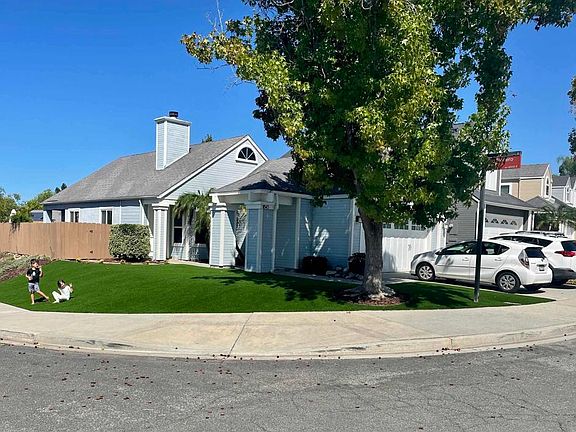 This is the most adorable single story home, low HOA's, Low maintenance yard with high quality Artificial turf front yard and private patio back yard edged with garden beds, corner lot, on a cul-de-sac leading into a large private and beautifully landscaped park with picnic area, basketball court, playground, and walking trails throughout this beautiful neighborhood. New upgraded appliances, double pane windows through out and Central Air. Third bedroom is open and used as a den/office but does have option closet and can easily be converted to the actual bedroom. Two car garage, work bench, pulldown attic and storage.