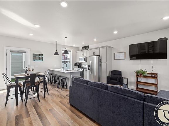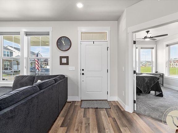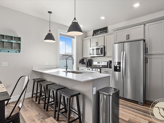Absolutely pristine — this home feels like new! The Opal by McCall Homes offers a larger footprint than many of the cottages currently on the market. With main floor living in mind, you’ll love having a bedroom and full bath on the main level, plus two more bedrooms and another bath upstairs. The kitchen shines with quartz countertops, gas range, Whirlpool stainless appliances, and a spacious pantry. Built for efficiency with a tankless water heater and thoughtful construction. Enjoy a fenced backyard with patio space for relaxing or entertaining. Beautiful green space and park across the street! Close to the River and walking trails. So much to offer in this beautiful neighborhood! HOA ($160/mo) covers water/sewer, lawn care, and snow removal — low-maintenance living at its best!