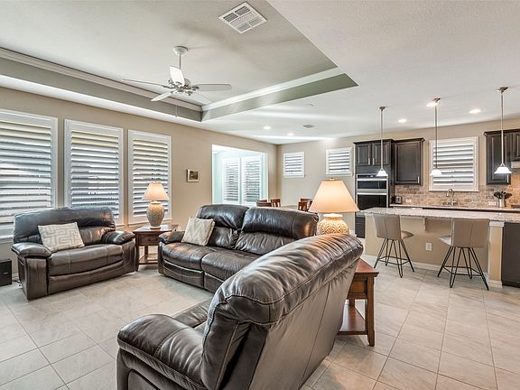 Welcome to this beautiful Abbyville Model single-story home located in a desirable 55+ community offering resort-style amenities. This well-maintained residence features 2 bedrooms plus a bonus room, a bright sunroom, and a spacious living room - perfect for relaxing or entertaining. Plantation shutters throughout. Tile flooring extends through the main living areas for a clean, modern look and easy maintenance. Refrigerator, washer, dryer purchased in September with 3 year warranty remain with the home. Utility room with additional pantry space or extra storage. Floors in garage, patio and outside front entryway have been upgraded with Epoxy coatings. Fenced backyard with covered patio and ceiling fan. Primary bath with double sinks and shower with glass surround. Upgraded kitchen package with built-in ovens and separate gas range. Enjoy an active lifestyle with three community amenity centers including pickleball, fitness centers, bocce ball, tennis, swimming pools and access to a nearby golf club with a restaurant.