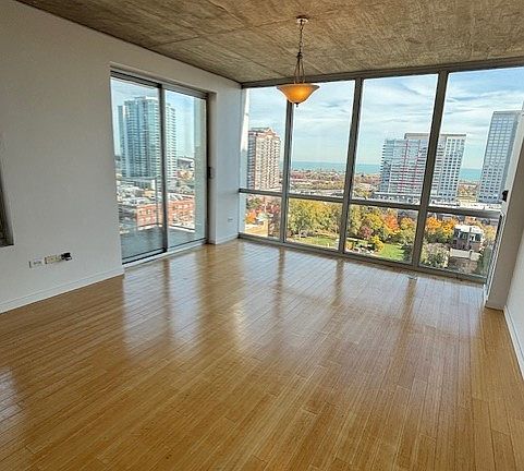 Stunning 2BR/2BTH Corner Condo with Exceptional Lake & City Views. Welcome to this striking corner residence flooded with natural sunlight and showcasing panoramic North & Northeast exposures. Floor-to-ceiling windows frame postcard-worthy views of the lake and skyline, creating a vibrant, airy atmosphere from the moment you enter. The open-concept living space features sleek bamboo flooring and a contemporary kitchen equipped with stainless steel appliances, granite countertops, and rich oak cabinetry perfect for entertaining or everyday comfort. The primary suite offers great closet space and a well-appointed bath, while the second bedroom is ideal for guests, a home office, or creative use. Step onto your private balcony to take in serene lake breezes and the beauty of Chicago's skyline. Additional perks include an in-unit washer/dryer, central HVAC, garage parking included, and a layout that maximizes both style and convenience. Available Now - a standout unit offering incredible views, modern finishes, and unbeatable value. Pets are welcome.