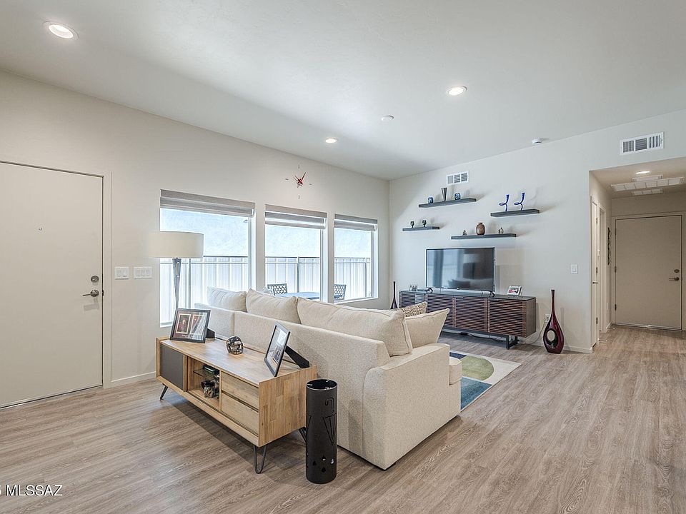 This home features an inviting and modern design, highlighted by elegant quartz kitchen counters that provide both beauty and durability. The kitchen is equipped with a gas range, complemented by stainless steel appliances. With three bedrooms and two bathrooms, there's plenty of room for comfort and privacy. Additionally, the home boasts a water softener system and a reverse osmosis system in the kitchen. The two car garage, with an epoxy coated floor, offers both functionality and a polished look. Outdoors, the covered patio is finished with brick pavers. This home combines practicality with modern amenities. Conveniently located near shopping, dining and a short drive away from U of A.