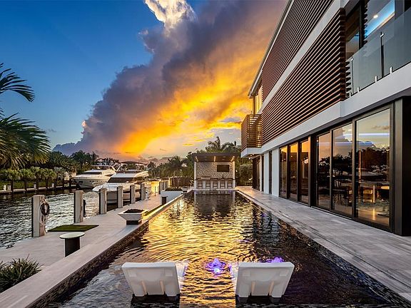 Enjoy the pinnacle of luxury living at this spectacular waterfront Point Lot estate in exclusive Rio Vista. A modern 3-story masterpiece, this residence showcases sophisticated interiors & private terraces capturing sunrise & sunset over the wide Intracoastal. W/7 bedrooms, a gourmet chef’s kitchen, soaring dbl-height livingroom, office, clubroom, & an indulgent indoor/outdoor primary bath, the home offers the perfect balance of comfort & grandeur. The third-floor sky lounge, gym, & guest suite create a true retreat, while expansive glass walls frame awe-inspiring views. For yachting enthusiasts, 250 feet of deep-water frontage accommodates even the largest vessels. Outdoors, enjoy a custom glass-facade pool, summer kitchen, and water features, all designed for unforgettable entertaining.