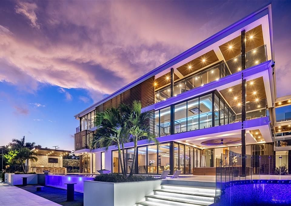 Waterfront point lot estateGuest suitePrivate terracesSummer kitchenCapturing sunrise and sunsetThird-floor sky loungeSophisticated interiors