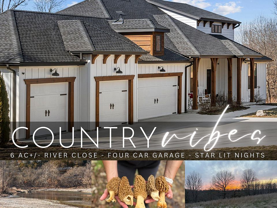 Where luxury meets wide-open freedom.This isn't just a house-it's your own slice of Missouri playground living on nearly 6 gorgeous acres. Think star-filled skies so bright you'll ditch the TV, mornings that smell like fresh air instead of traffic, and space to roam, ride, hunt, fish, and breathe.The home itself? Better than new. Thoughtful landscaping already in place, a handy shed for all the toys, and room for everything from four-wheelers to fire pits. Inside, this all-electric new construction delivers clean lines and warmth with hand-scraped hickory floors, granite countertops, stainless appliances, and a wide-open layout made for hosting or unwinding. Vaulted ceilings soar overhead, and the electric fireplace wrapped in a wood mantle anchors the living space with cozy, modern charm. With 4 bedrooms, 3.5 baths, and a 4-car garage, there's room for people, projects, and passions.Step outside and the adventure really begins. Hop on your side-by-side and head straight to the river-community access makes it easy to launch a boat, cast a line, or chase trophy smallmouth bass. The land invites hunting, exploring, four-wheeling, mushroom hunting, stargazing, and late-night bonfires under skies you can't find in town. Wildlife is abundant, privacy is real, and the pace of life slows down in the best way.And when you're ready for civilization? You're only 20 minutes to Branson West shopping, dining, and everyday conveniences, with Branson, Table Rock Lake, and Cape Fair close by-all without sacrificing the peace and quiet. Affordable stone County taxes, private well and septic, and so close to Indian Tree Golf Course where you can tee it up year-round!This is luxury without fences.Refined, rugged, and ready for adventure.If you've been dreaming of space, stars, and a home that lets you truly live-this is it.