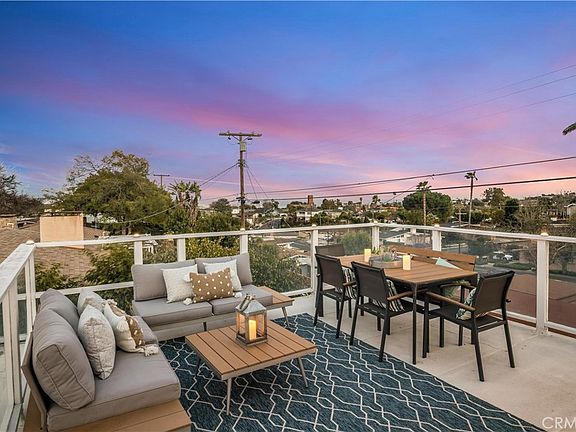 En-suite bath, an iconic Malm fireplace, plantation shutters, soaring ceilings, LED recessed lights and sliding glass doors to lead to the deck with awning to enjoy the ocean and sunset views. Serene backyard setting with winding stone pathways and sitting areas, and the soothing sound of the fountain. New drought tolerant landscaping in the front and backyard with drip system. Recent upgrades include, interior and exterior paint, all new light fixtures, new door hardware and hinges, refinished hardwood floors, new carpet, All new hall bath, new energy efficient LED recessed lighting throughout, updated security system, new roof over garage, new roof deck. 2 car garage with direct access to the home. Close to shopping, freeways, restaurants, and schools.