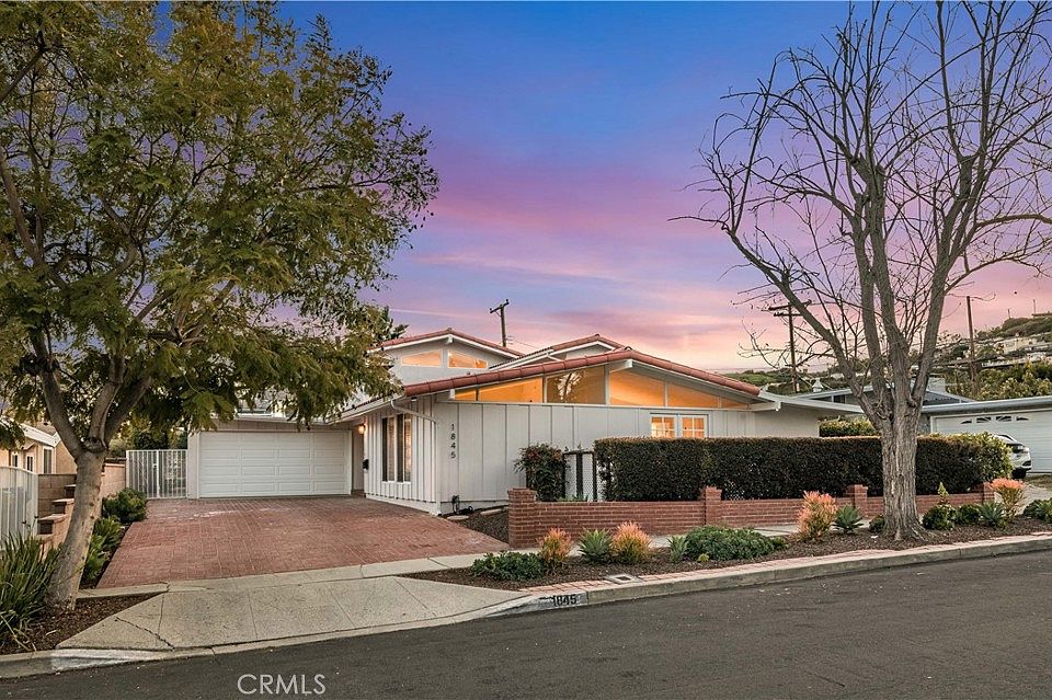 Located in the hills of Miraleste Pines you will find this exceptional 4 bedroom, 3 bath home with ocean, harbor and PV hill views. Mid-century modern architecture is described as a twentieth-century architectural style characterized by clean lines, muted curves, a lack of ornamentation, large windows, interior design based in functionality, and open floor plans intent on making indoor and outdoor living spaces complement each other and Chandeleur is a great example of this. Featuring high vaulted ceilings, new LED recessed lighting and an open floor plan. Beautifully refinished hardwood floors on the main level. Enter through leaded glass doors with side lights into a spacious, open living room with fireplace. The grand dining room has a wall of cabinets with enviable storage, and new Chandelier. The master suite features and sitting room, large cedar lined closet, and a remodeled en-suite bath with new faucets, mirrors, light fixture, toilet, and exhaust fan. The main bedroom has French doors that open to a lovely brick patio. All new full bathroom across from the 2nd bedroom also features a Solatube skylight. The 3rd bedroom in the back of the house has a tile floor and large closet. Two bonus rooms on the first floor, not included in the square footage, with tile floors and sliding glass doors to the back yard. Remodeled kitchen with Solatube skylight, granite counters, new dishwasher, Décor oven and warming drawer and two microwaves. Great storage in built-in pantry and hutch. Grand staircase leads to the top floor could be a bedroom/bonus room/In-law suite and features an updated