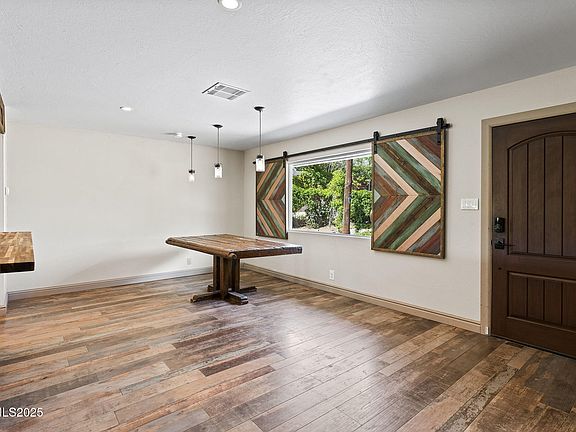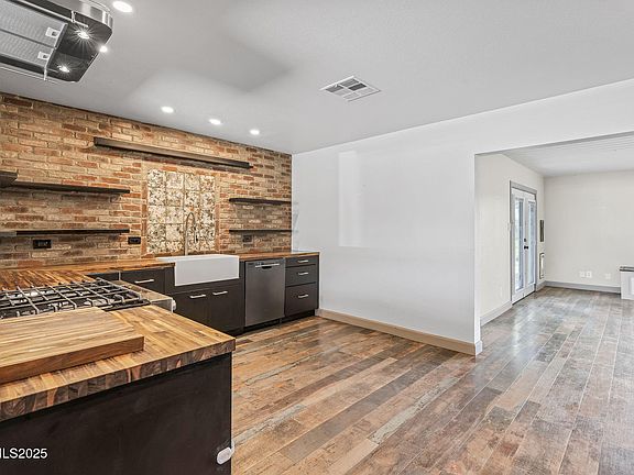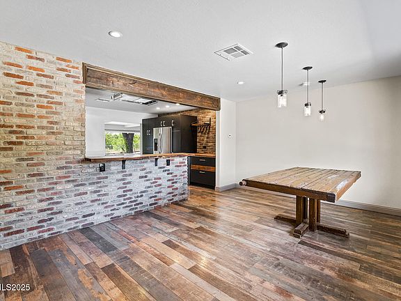 Located at the end of a quiet street with beautiful views of the eastern Sierras and Peavine Mountain and bordered by the Highland Ditch, this home has been nicely updated with many new and newer features: Remodeled kitchen with new cabinetry, appliances, breakfast bar, and butcher block counters; remodeled bathrooms; a high-efficiency furnace/AC; new hot water heater; energy-efficient windows, blinds and shutters; newer gas log fireplace; and durable industrial-grade vinyl plank flooring, all combining comfort and current conveniences. A 30-year roof was new in 2017, and the sewer line was replaced in late 2022. The custom projector movie theater with automatic blinds ensures an entertaining experience right at home. Rest easy in the bedrooms equipped with blackout blinds and Flair temperature control for the utmost convenience and comfort. Enjoy your morning coffee on the spacious, ramped backyard deck and soak in the beauty of the early morning sun lighting up the mountains, or relax at the end of the day with a gorgeous sunset. This convenient location offers easy access to Lake Park just down the street, I-80, UNR, Rancho San Rafael, and a variety of dining and shopping options. Zoned for Reno High School.