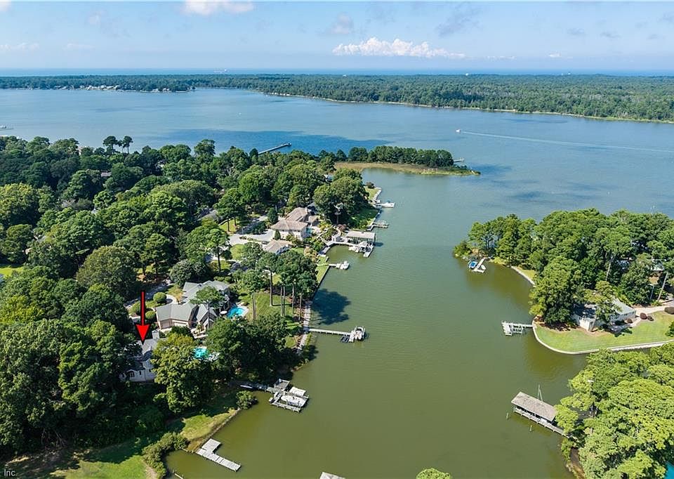 Rare opportunity to own deep water on 1.5 acres in Alanton. You'll enjoy water views with your own beach when tide is out. The Lot offers privacy and sits up high on the Lot. Offers pier, dock, floating dock, boat lift for great recreational activity right off of Broad Bay. Low Median Tide is 4 ft. Recent Exterior was inspected & no issues, Roof replaced 11/2013, Some Windows & Doors replaced 2022, 1 HVAC Unit replaced 12/2024, Pier/Dock 2006. Tons of potential. In ground 8ft deep chlorine pool with wonderful outdoor space for entertaining. Offers 1st Floor Bedroom & Full Bath, 2 Living Areas on 1st Level with Water views, Primary Bedroom with Water views, 2 other bedrooms with full bath on 2nd Level and Large Room over Garage. Property is selling AS IS and priced for someone to make renovations and turn into their dream home. This is a fabulous location if you are looking for a lifestyle of living on the water !