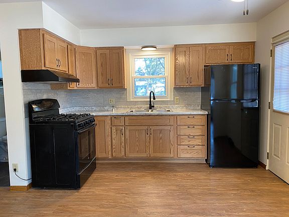 Living room kitchen and half bath on the first floor, two bedrooms and full bath upstairs, full basement. Gas heat, central air, garage, Lake Wissota access. New flooring, lights, fixtures, windows, paint